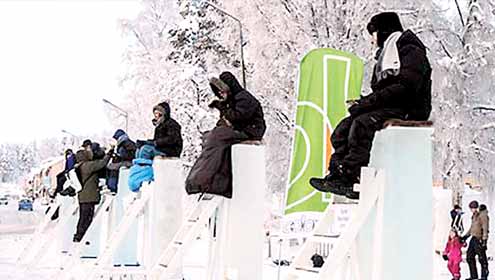 سوئیڈن میں برف کے پول پر بیٹھنے کا مقابلہ